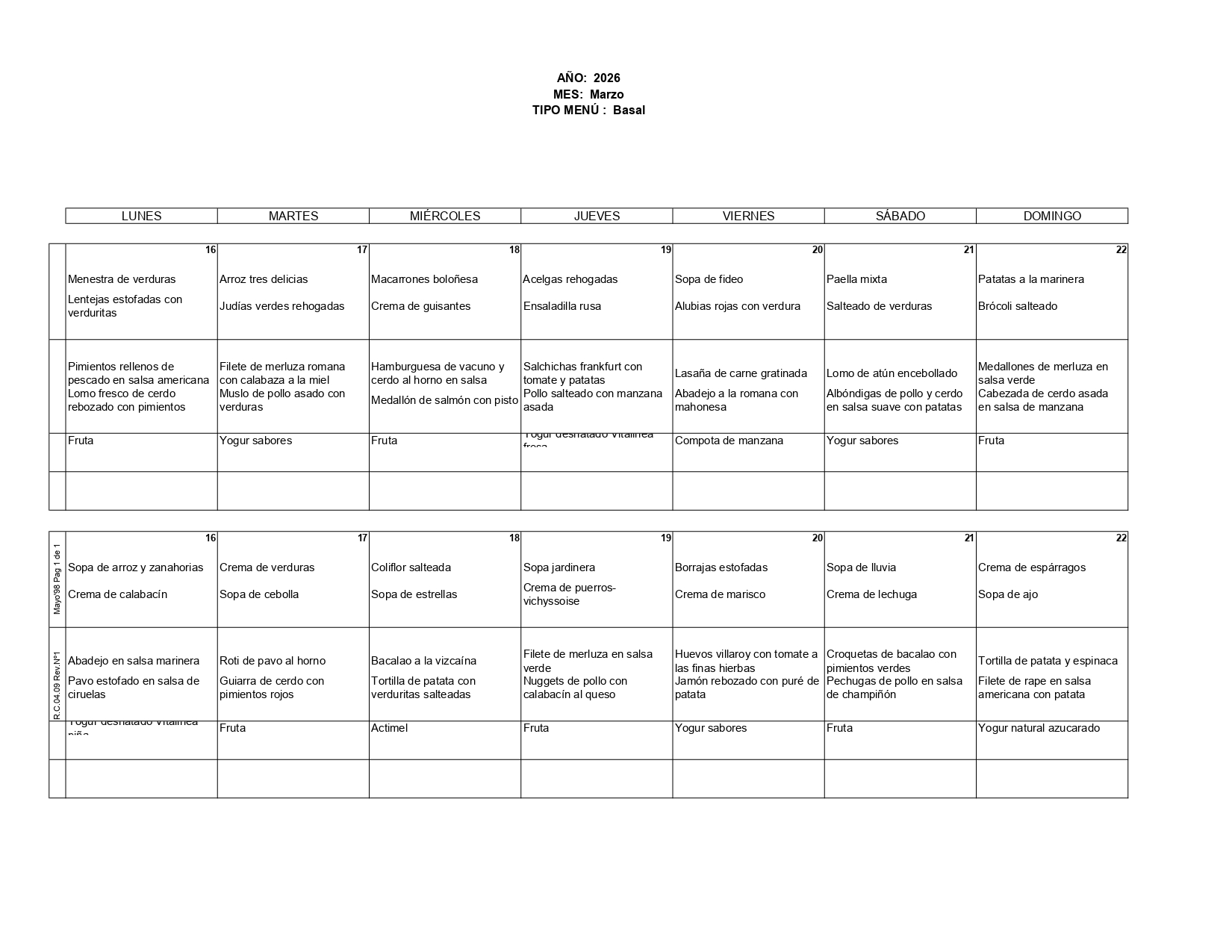 Lunes 16 Marzo Segundos Comida