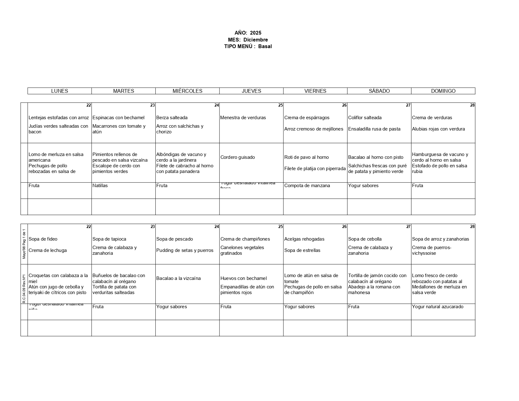 Martes 23 Diciembre Primeros Comida